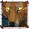 The wolf-like appearance of this creature is familiar until it reveals its bipedal posture. It looms above you and you feel small.