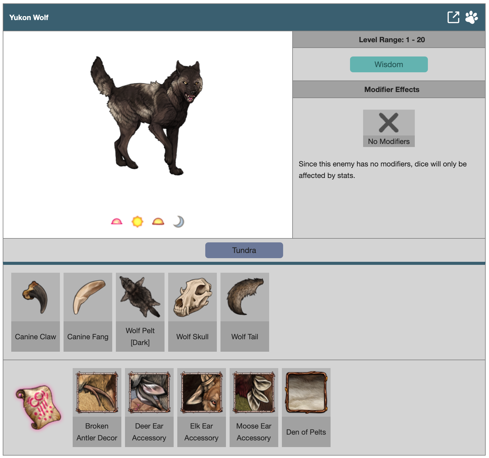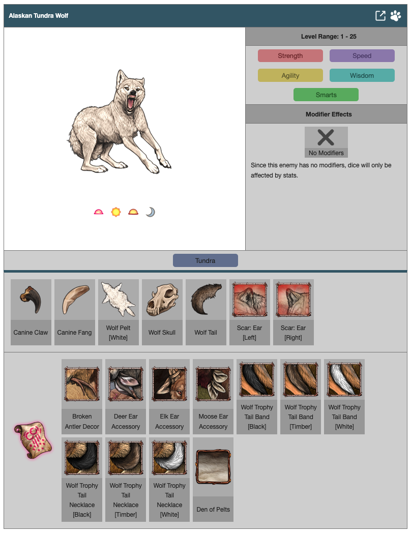 <td class="enemyname">Alaskan Tundra Wolf</td> | <td class="enemyname">Alaskan Tundra Wolf</td> | ||