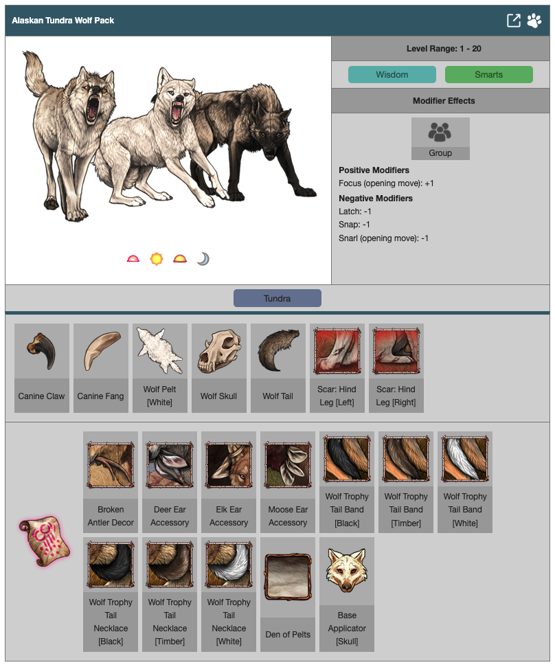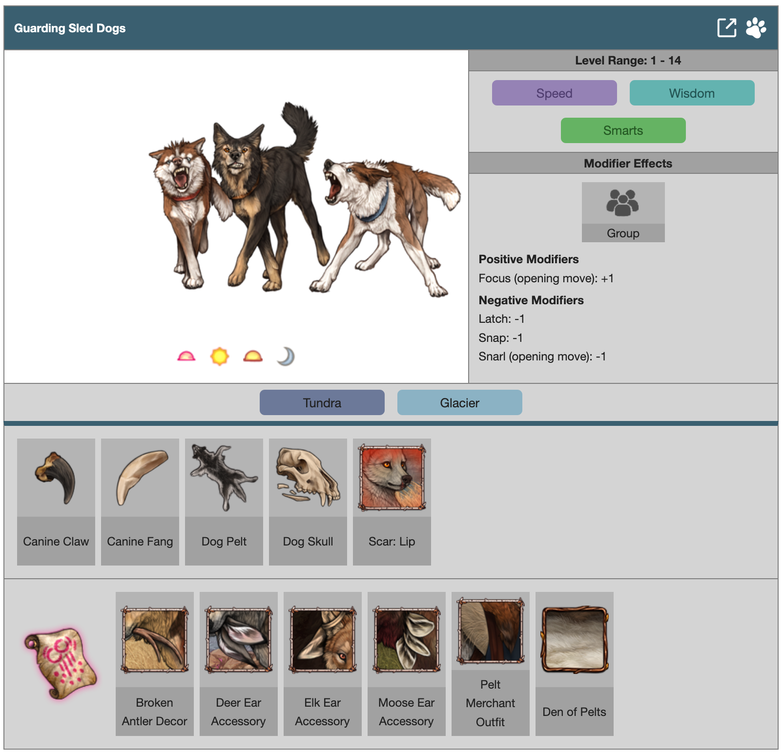 <td class="enemyname">Alaskan Tundra Wolf Pack</td> | <td class="enemyname">Alaskan Tundra Wolf Pack</td> | ||
