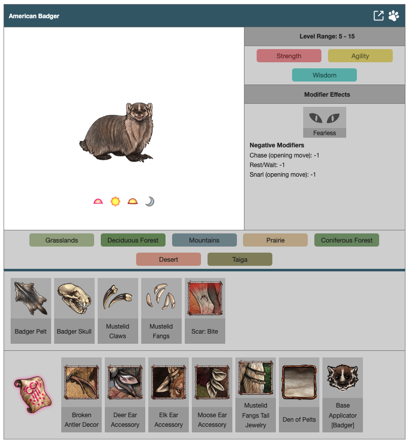 <td class="enemyname">American Badger</td> | <td class="enemyname">American Badger</td> | ||