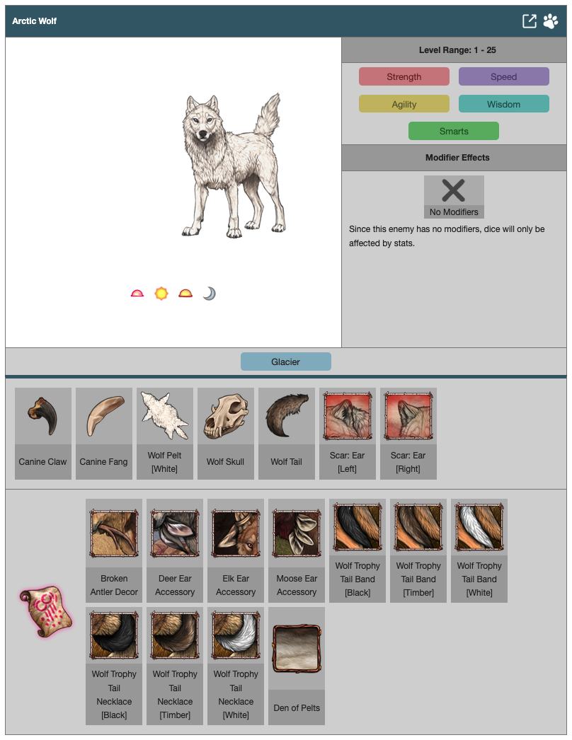 <td class="enemyname">Arctic Wolf</td> | <td class="enemyname">Arctic Wolf</td> | ||