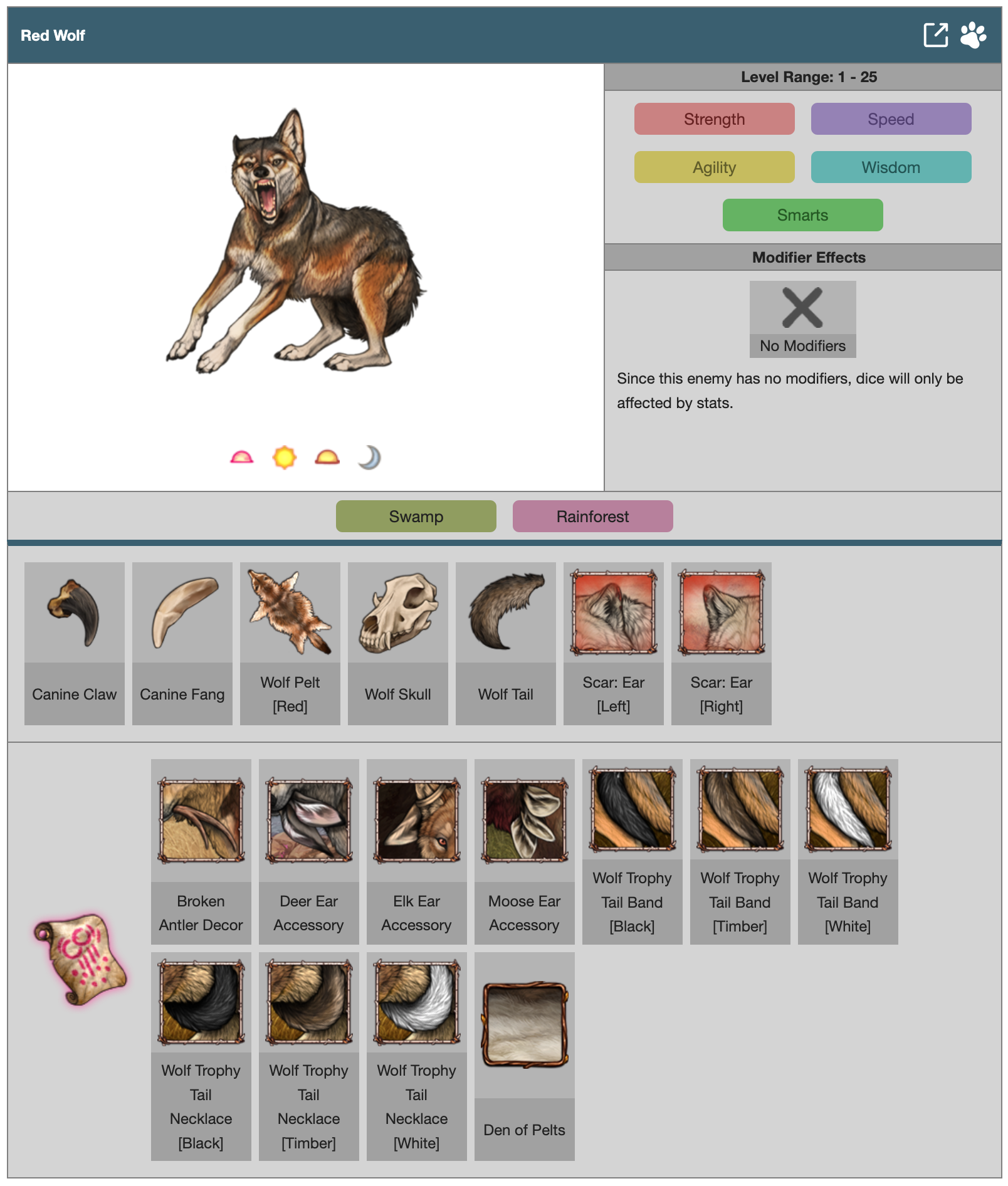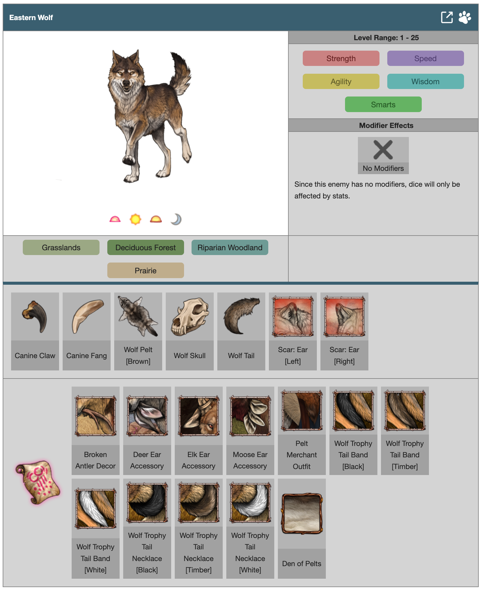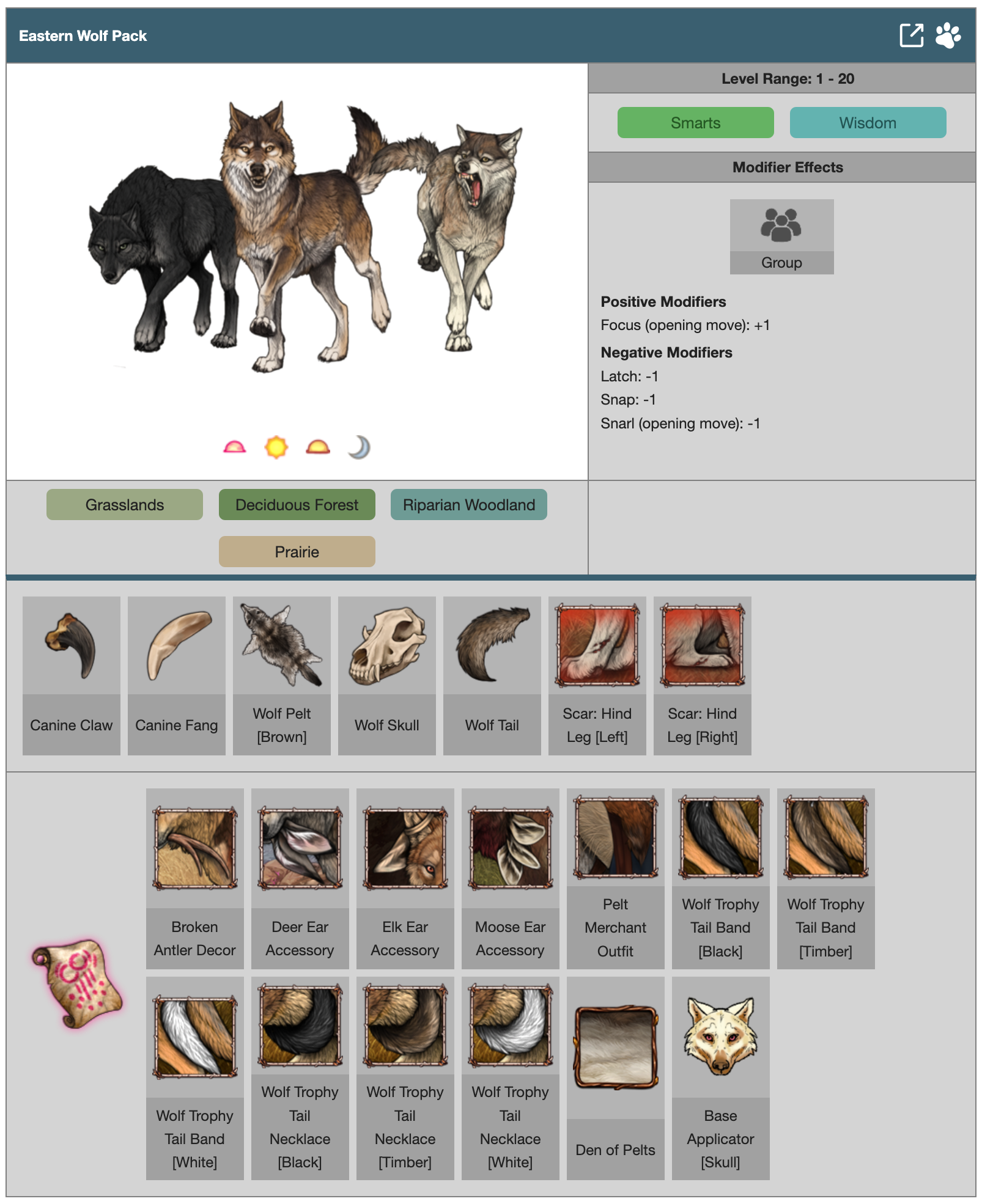'''Only enemies Level 5 and higher have a chance of dropping trophies, and only if your lead wolf is at least Level 10!''' | |||