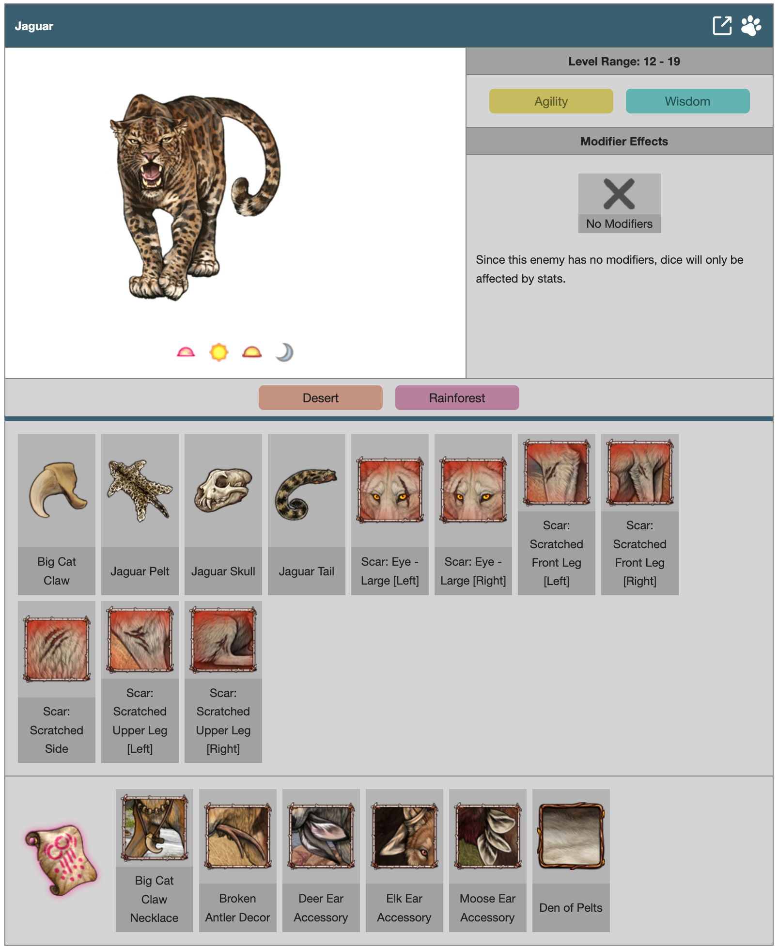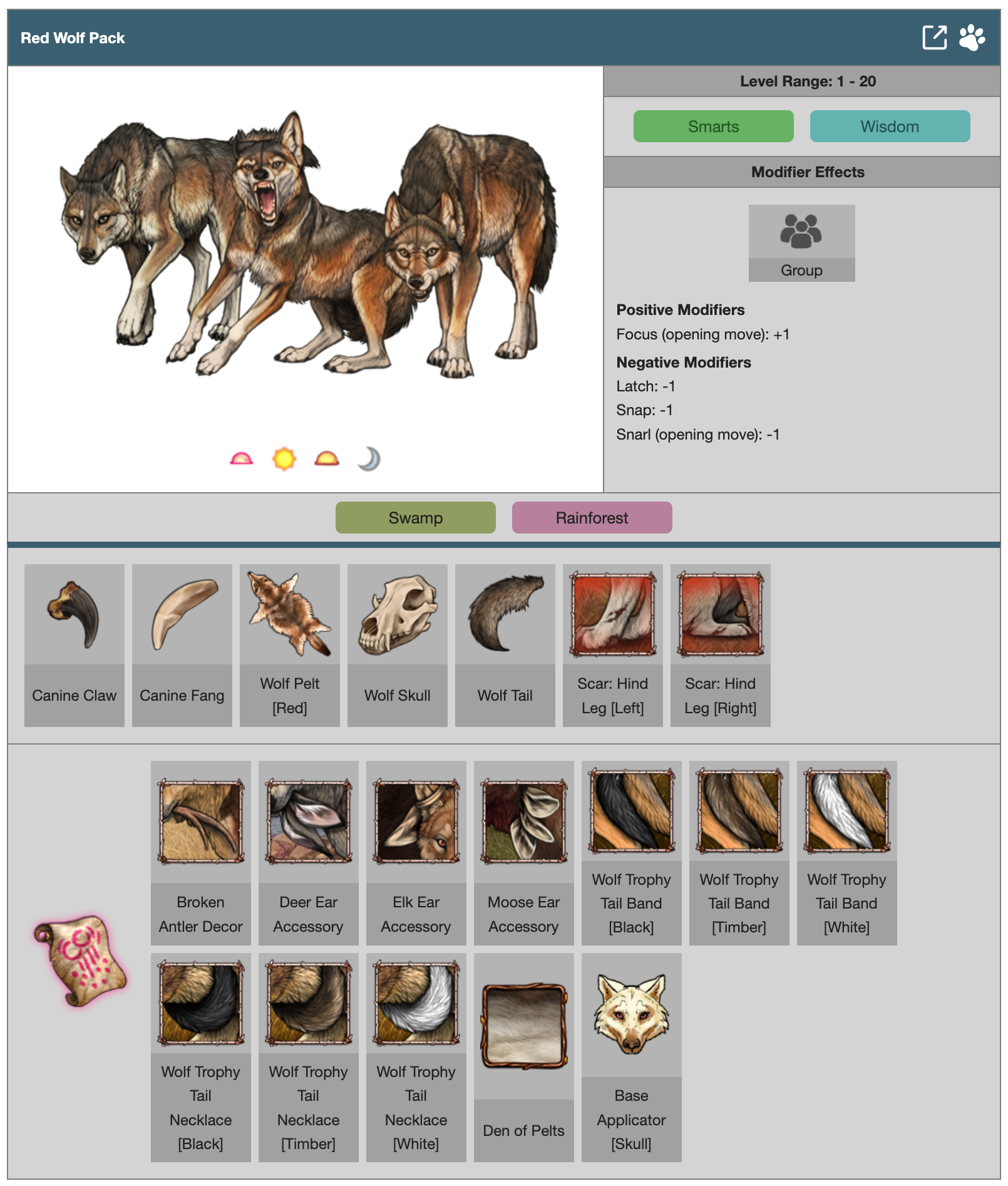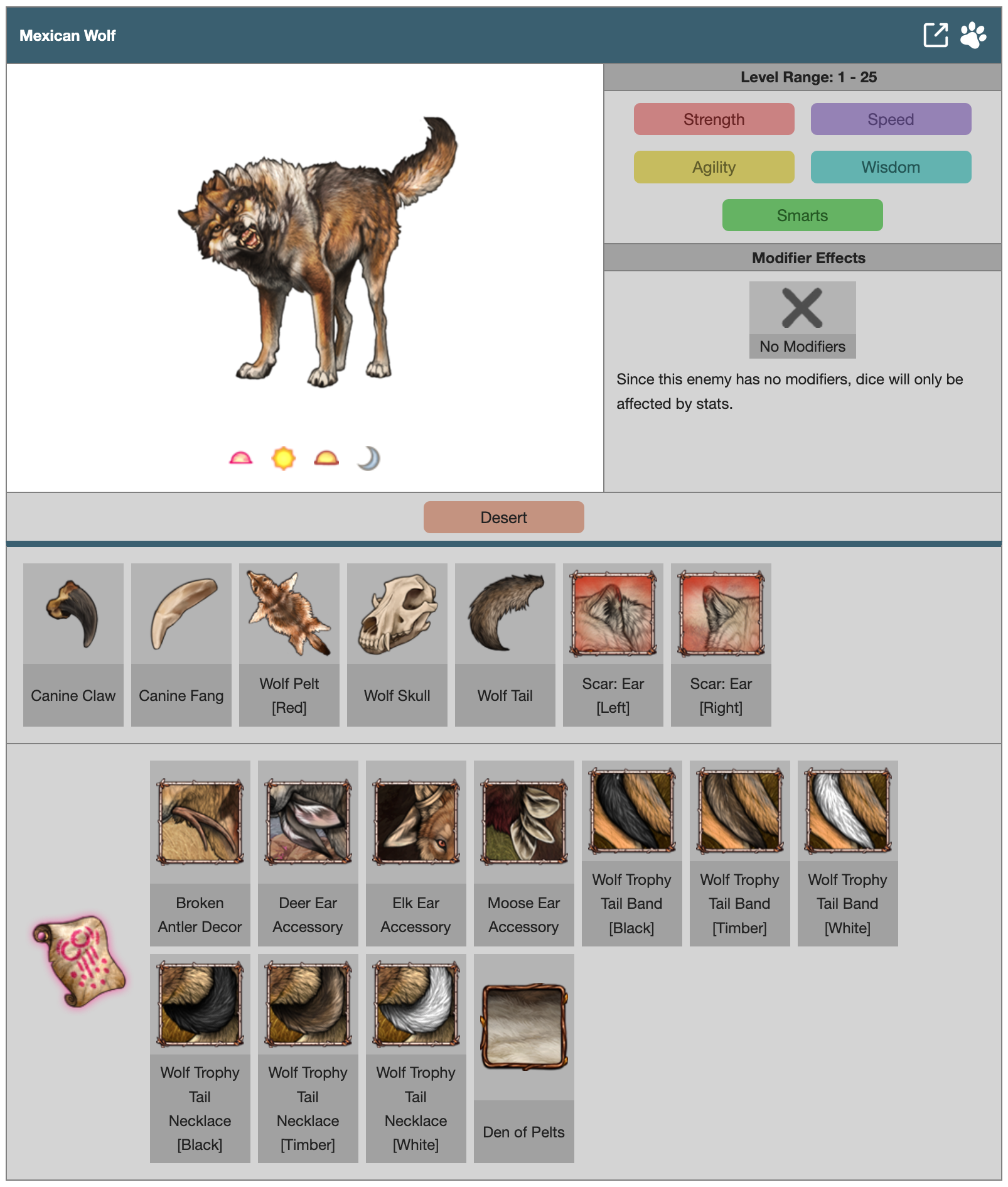 '''Only enemies Level 5 and higher have a chance of dropping trophies, and only if your lead wolf is at least Level 10!''' | |||