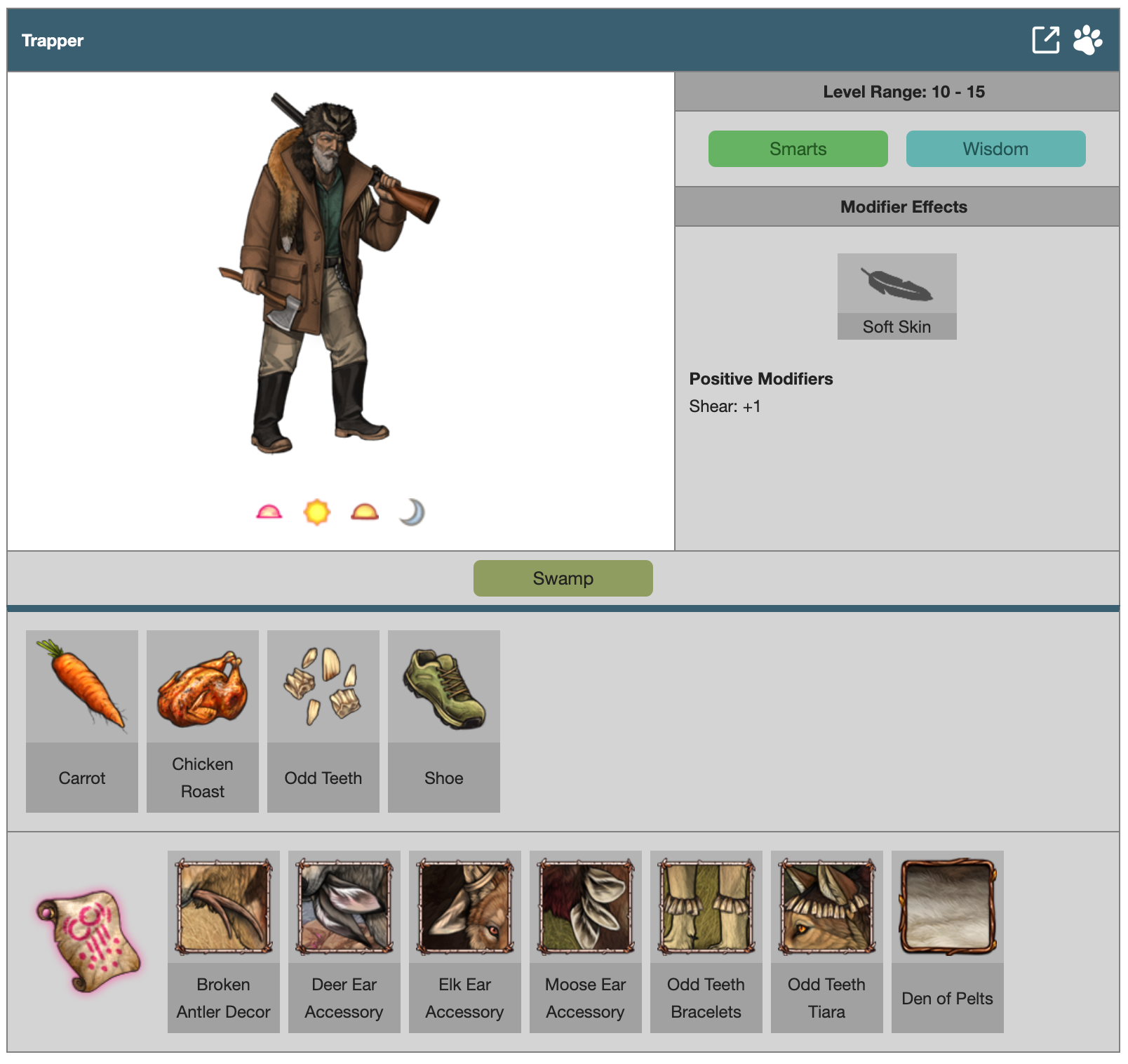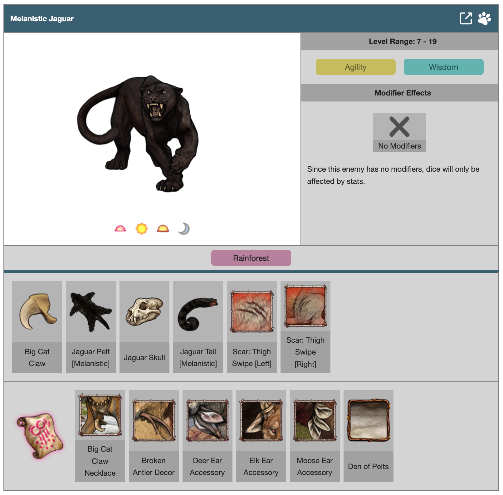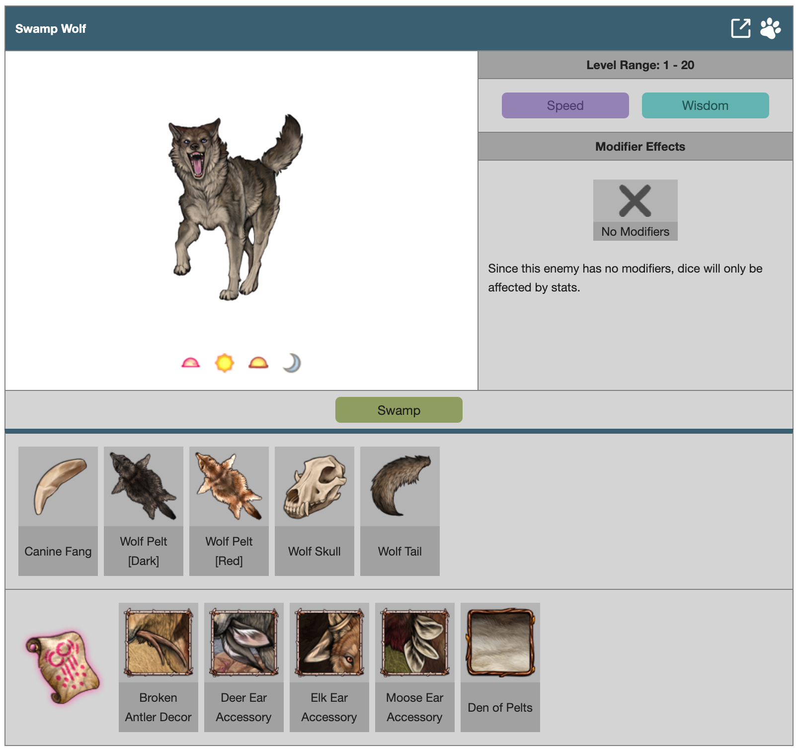 The enemies listed on this page can be found any time while exploring normally. Some are biome-exclusive while others have unique appearances based on the time of year! Each enemy has its own set of drops and characteristics which make each battle unique. | |||