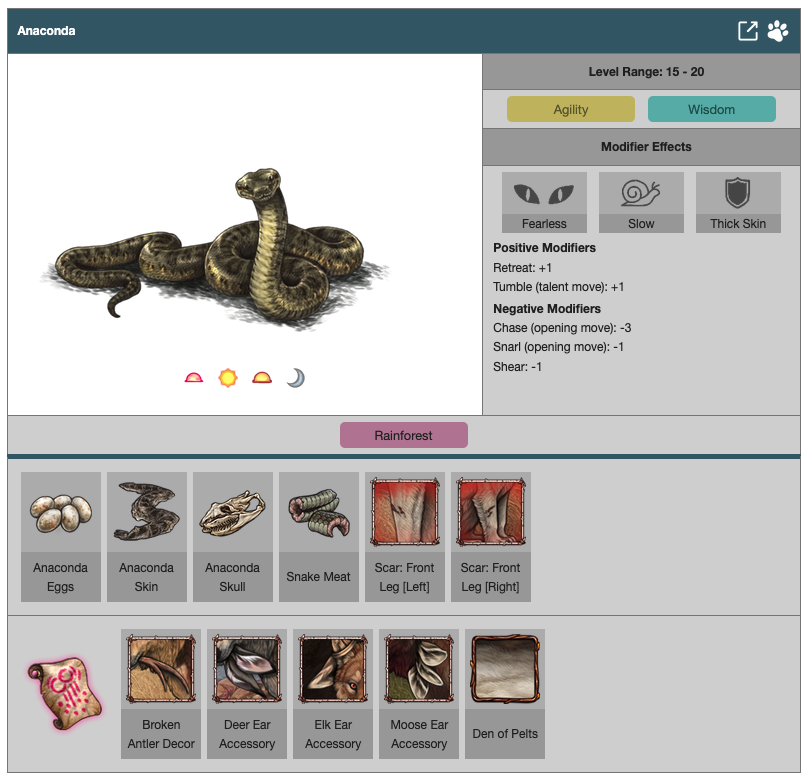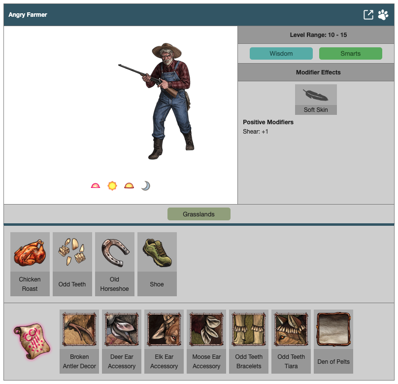 The enemies listed on this page can be found any time while exploring normally. Some are biome-exclusive while others have unique appearances based on the time of year! Each enemy has its own set of drops and characteristics which make each battle unique.