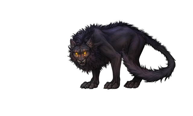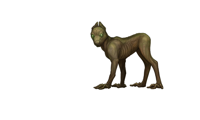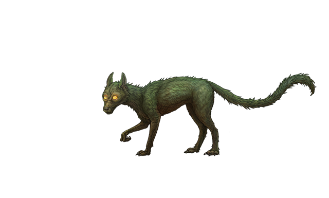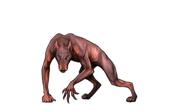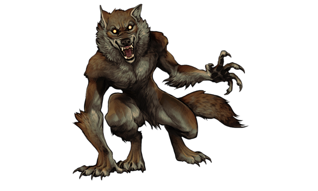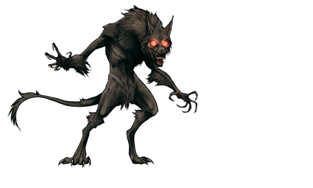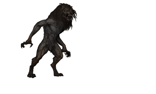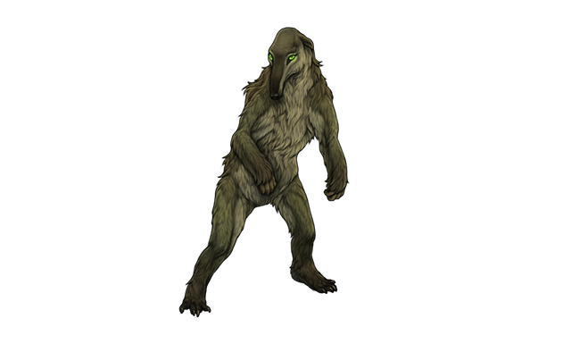 The wolf-like appearance of this creature is familiar until it reveals its bipedal posture. It looms above you and you feel small.
