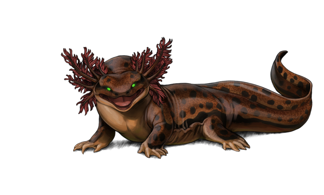 The Walgren Lake Monster has made itself right at home. It hunkers down in a cool, muddy spot and sleeps soundly. You wonder how it can be so carefree with all that's going on in the world. It lifts its muddy head expectantly as you approach.