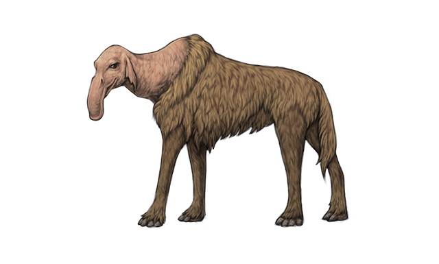 The stocky body of the creature can be seen among the trees, this time on all fours, doing the same thing as always: looking for something to eat. You're glad that you don't have to eat with such a tiny mouth. It would take ages to feel full!