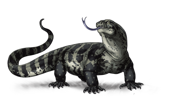 Large flies swarm around its head, and it reaches up to swat at them with large scaly paws. It manages to catch some and licks the smushed bugs happily off of its palm. Yuck!
