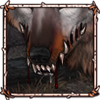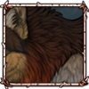 The beast lets out a warning growl at first but stops suddenly, visibly intrigued by your visit. Its ruffled fur adds to the creature's size but you find its human hands and chest scarier. You let it come closer to sniff you, prepared for any possible outcome of this encounter.