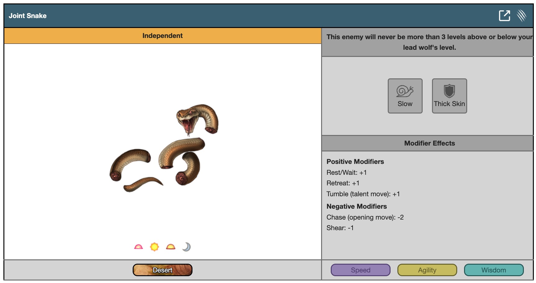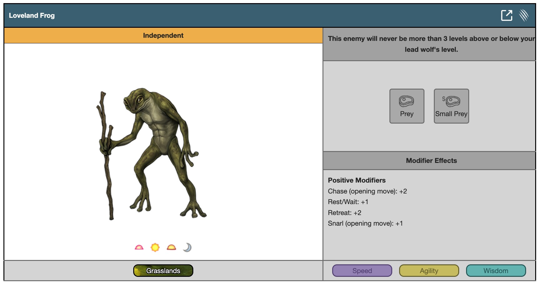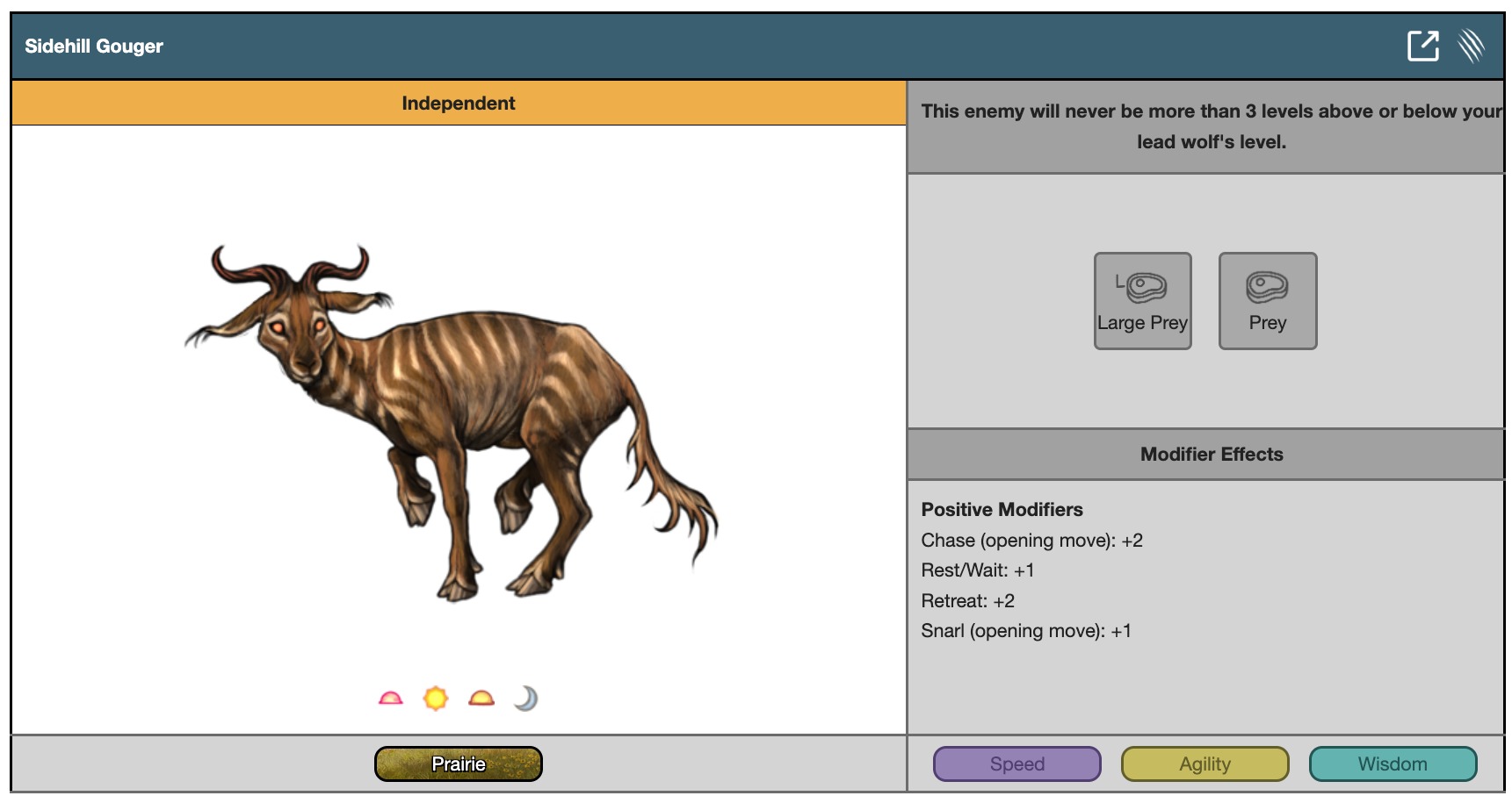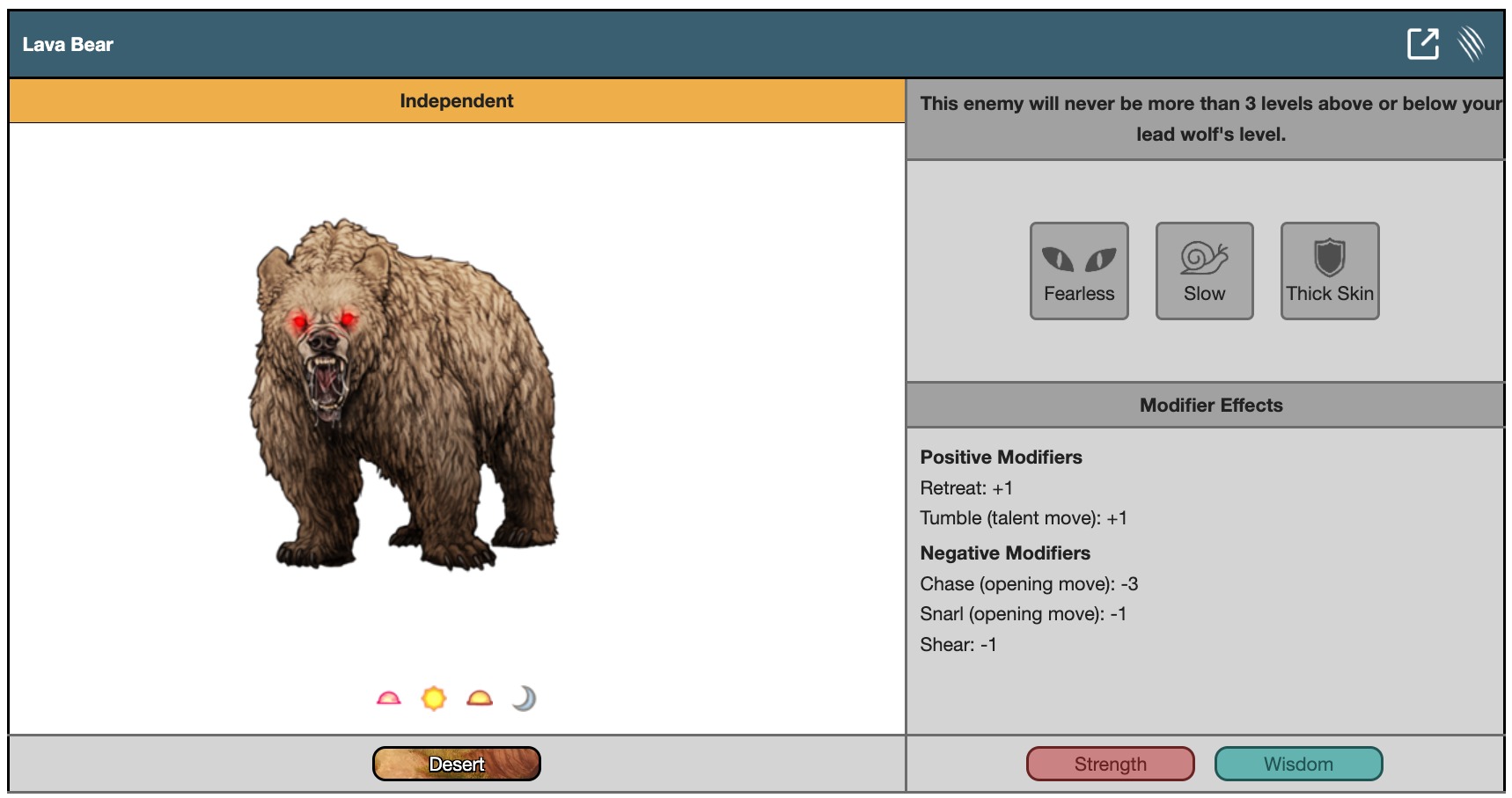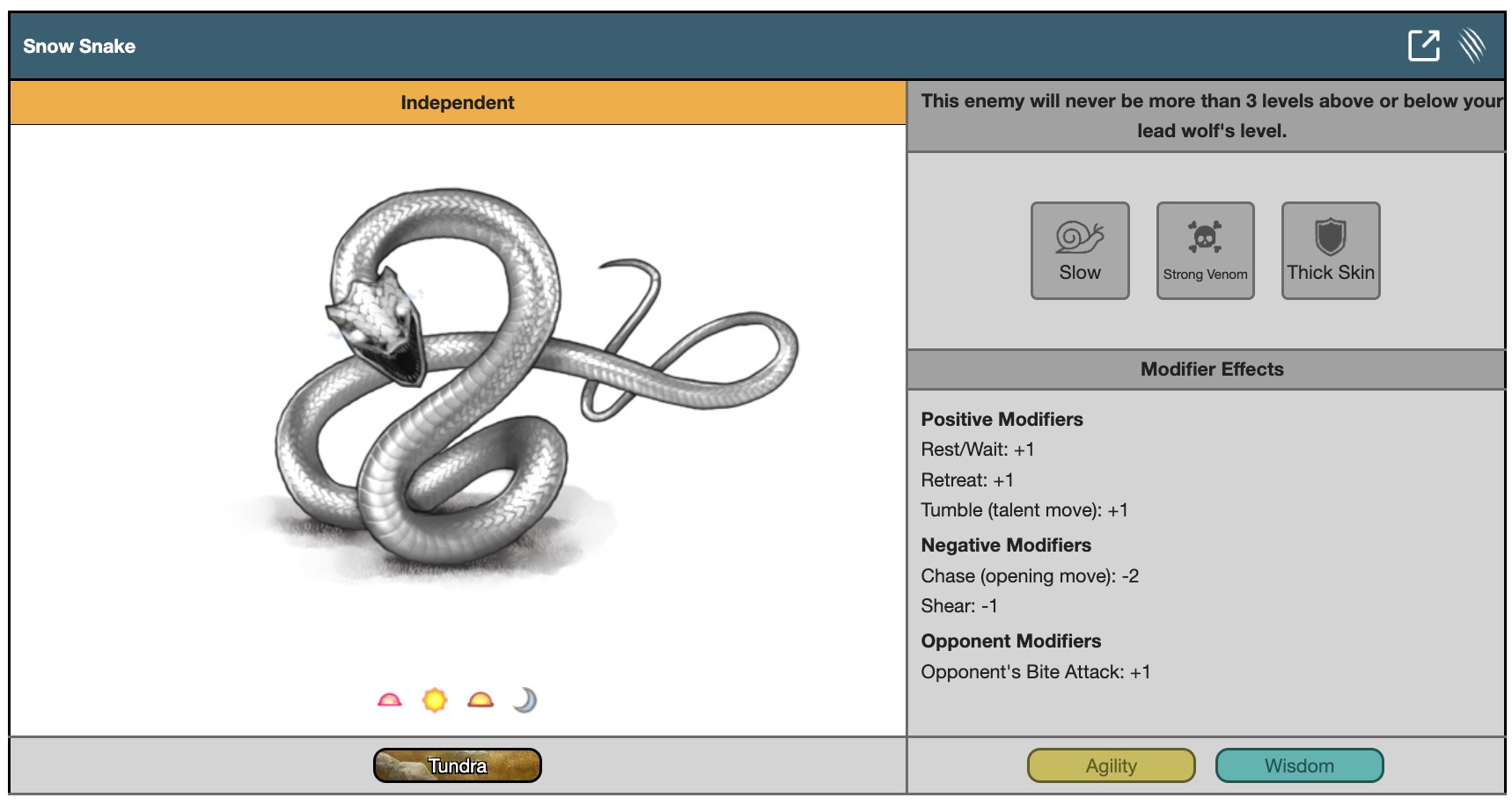 This enemy will never be more than 3 levels above or below your lead wolf's level.