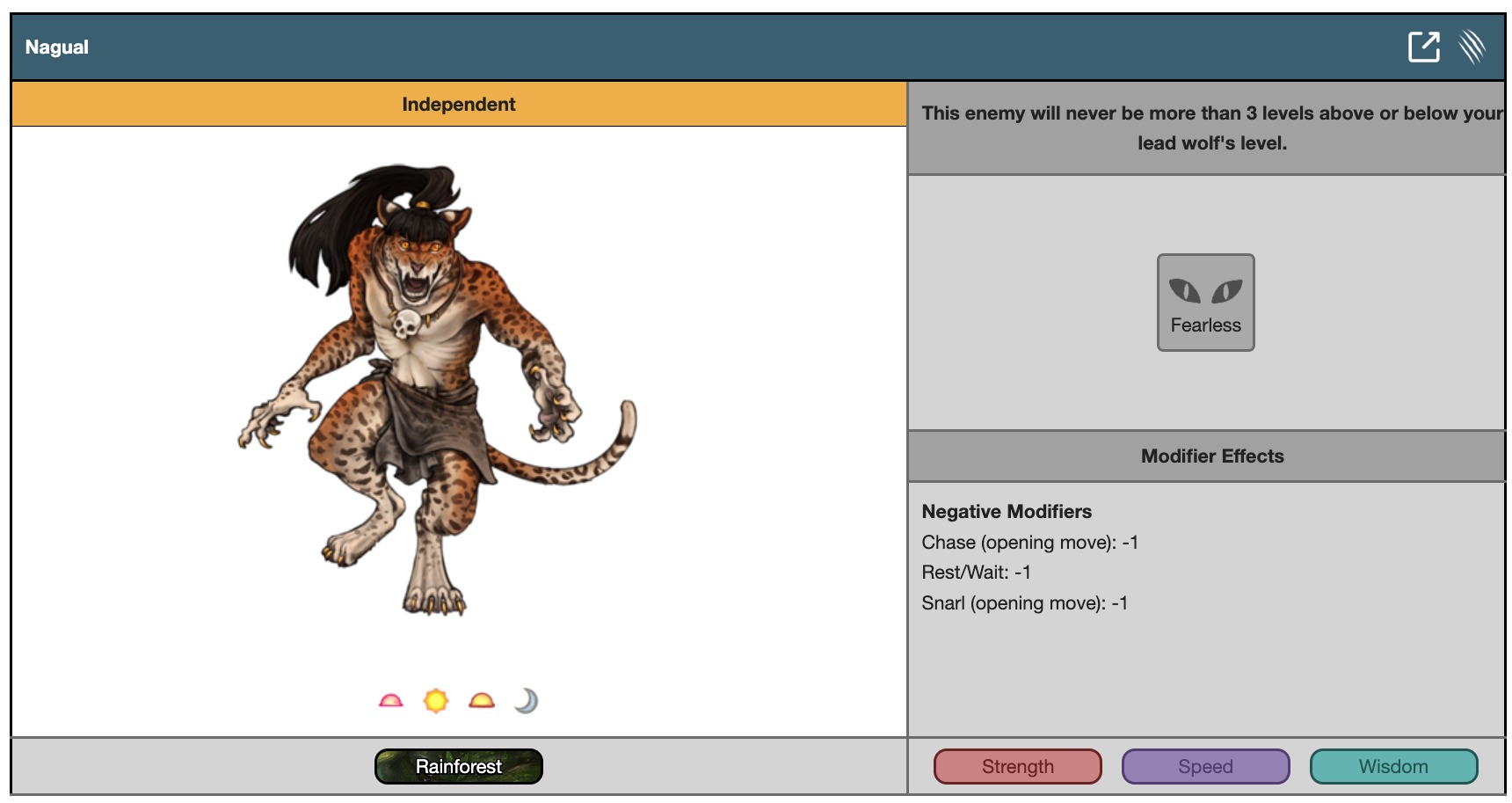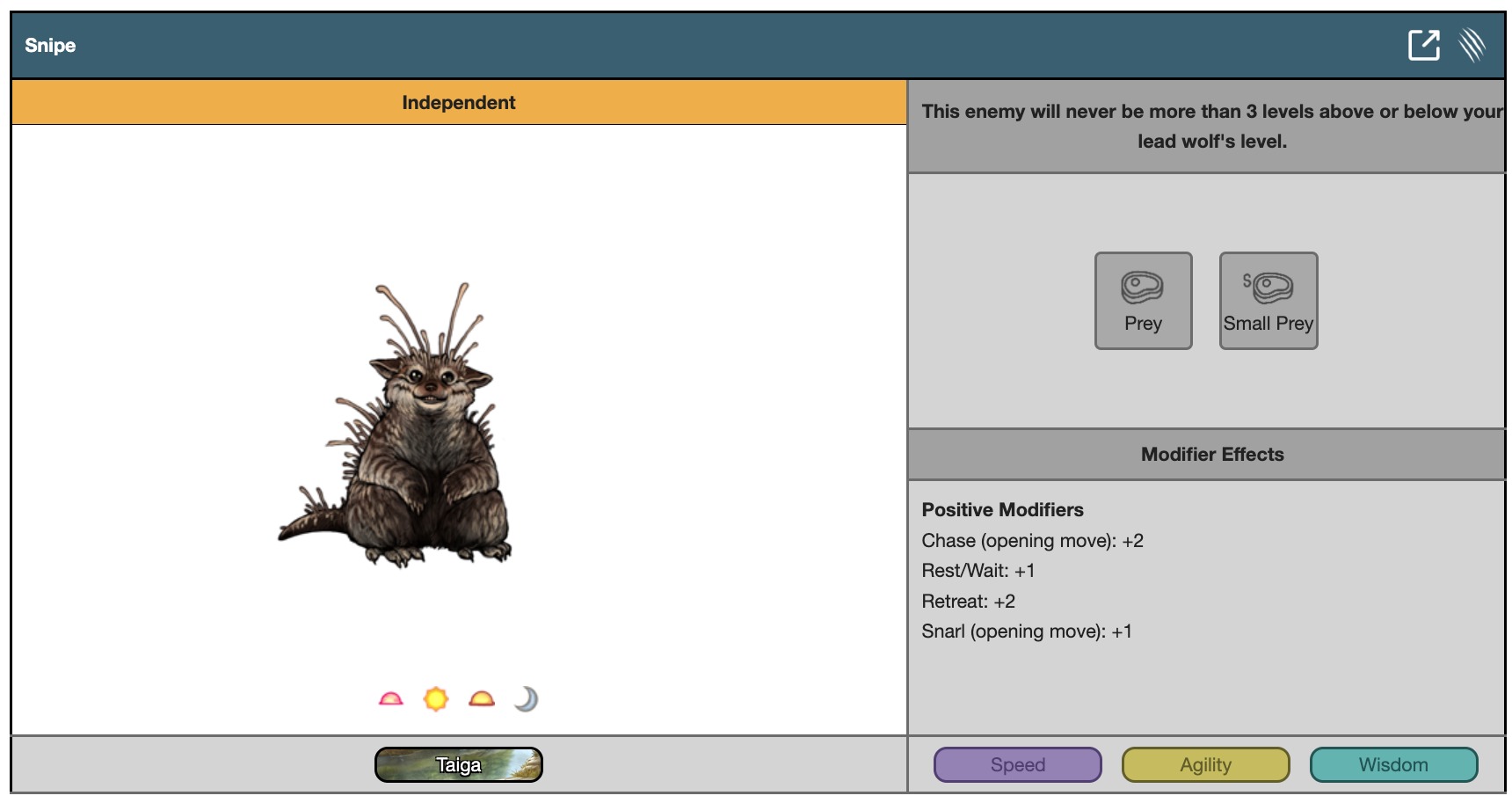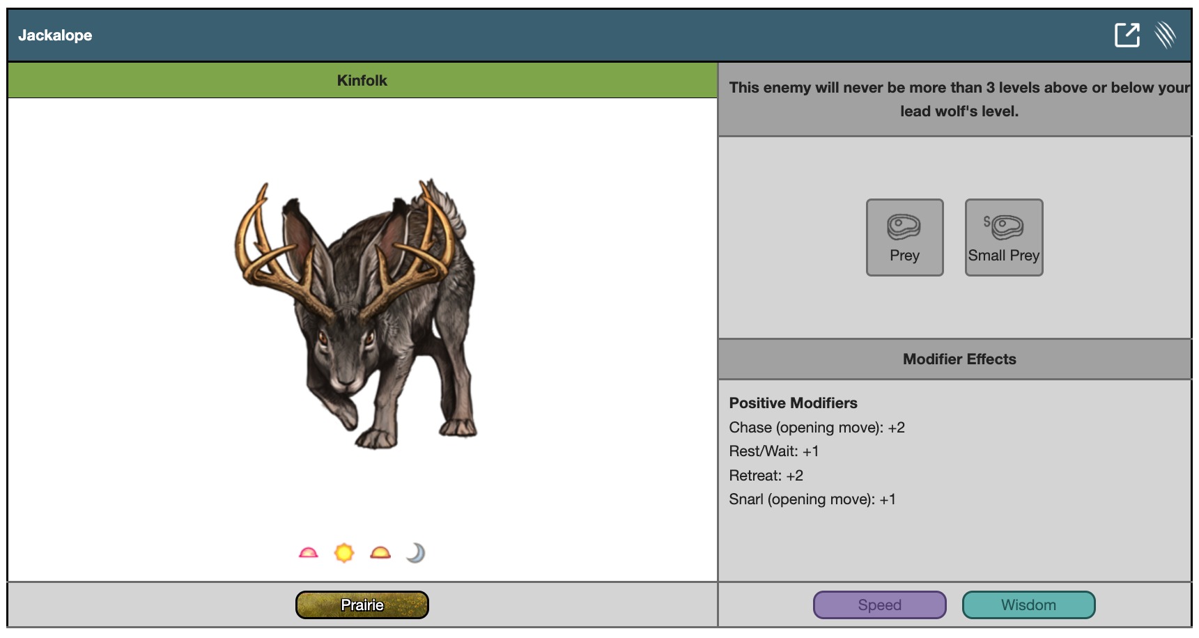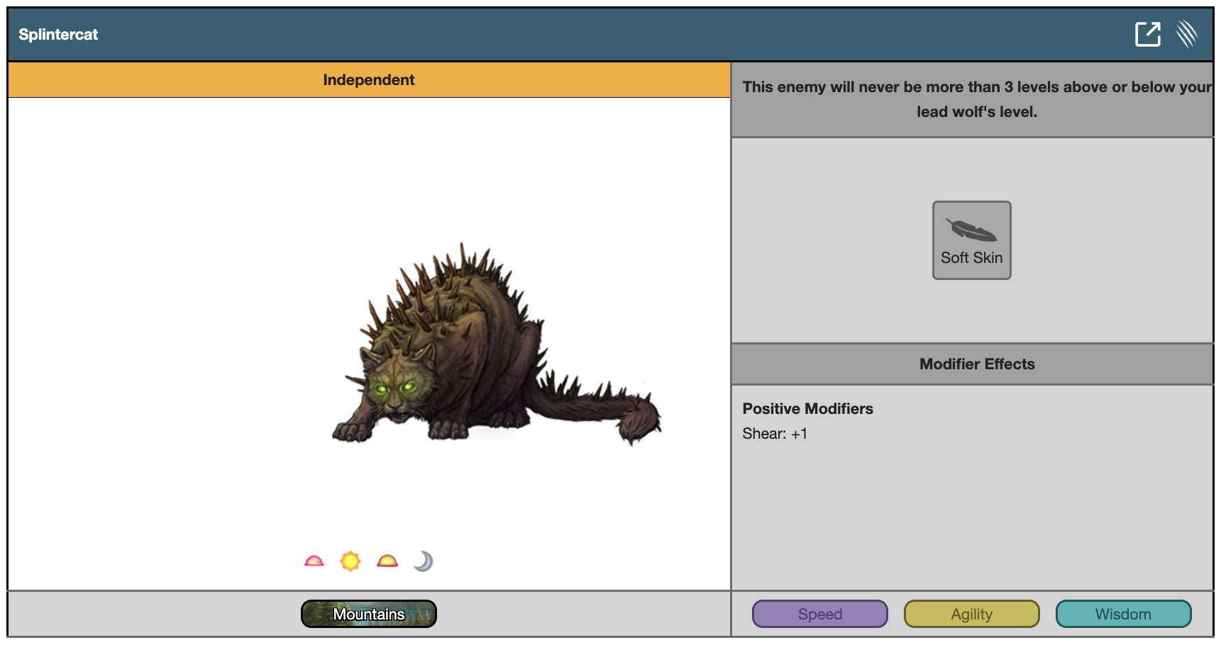 This enemy will never be more than 3 levels above or below your lead wolf's level.
