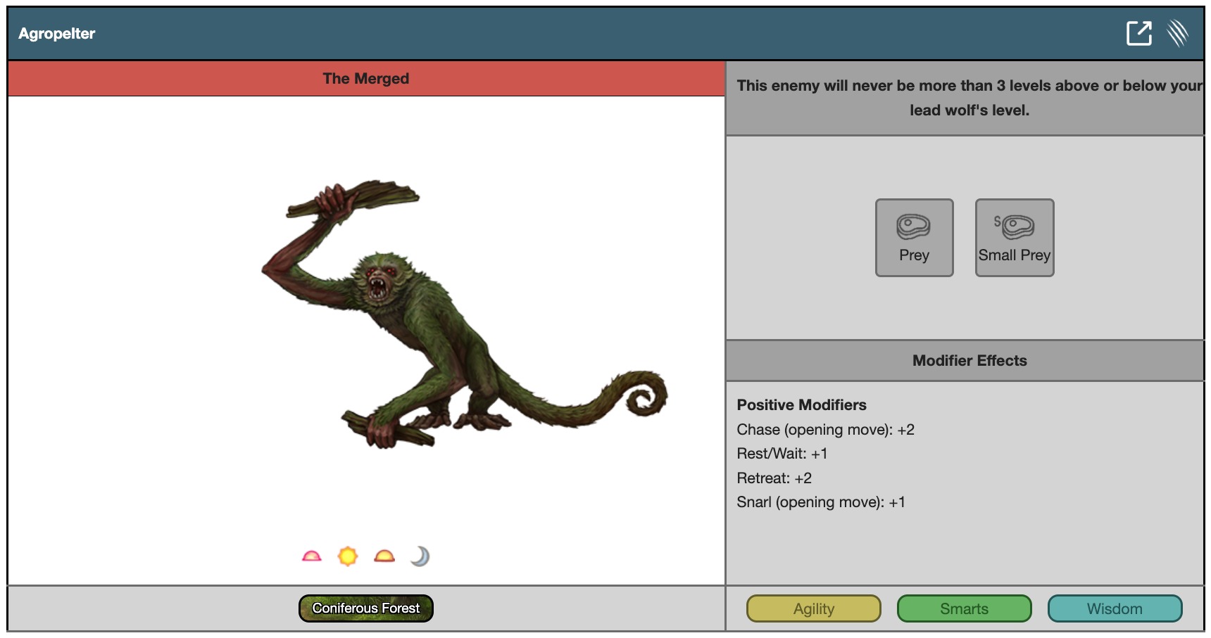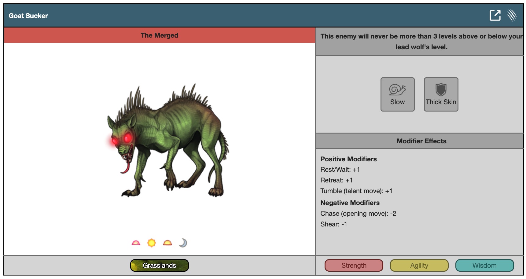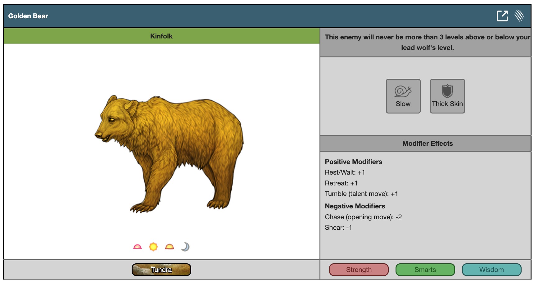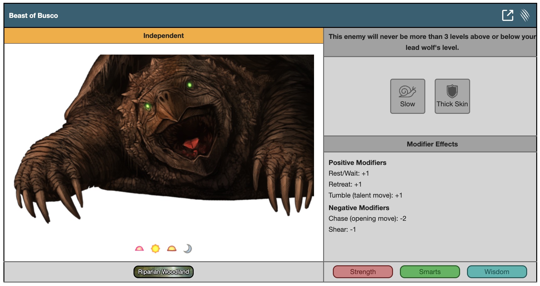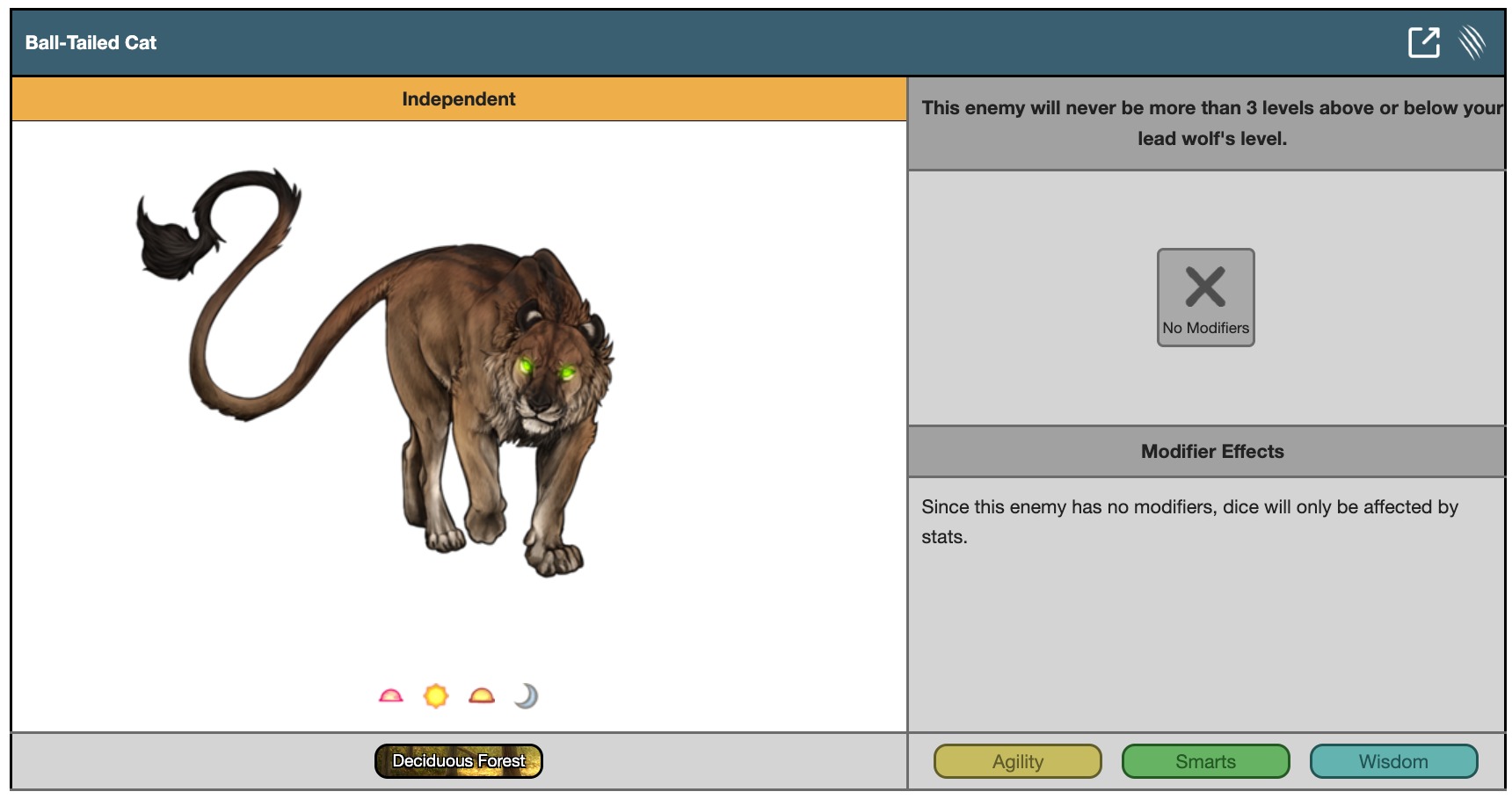 This enemy will never be more than 3 levels above or below your lead wolf's level.