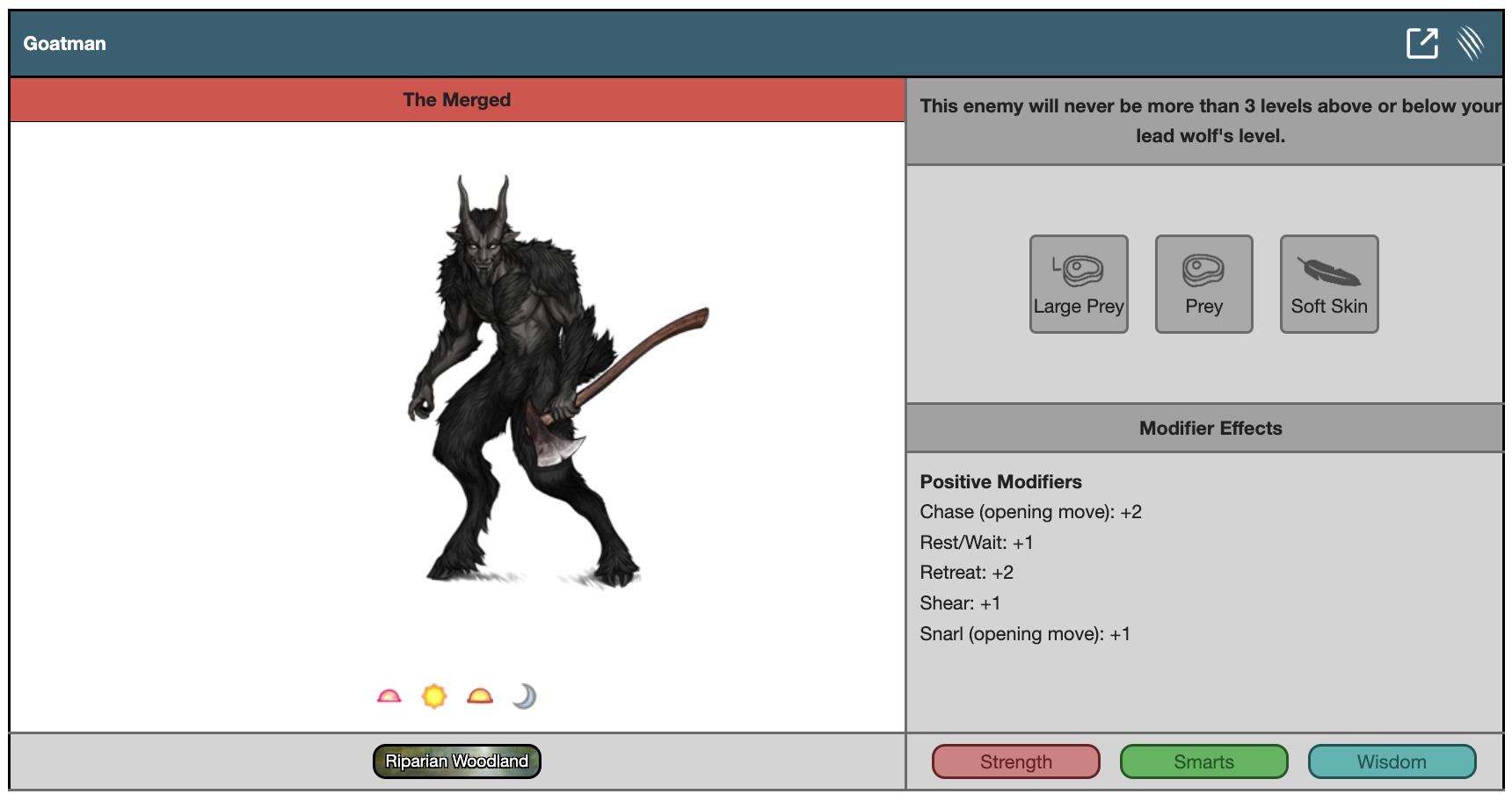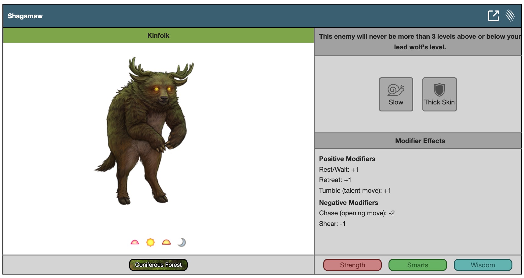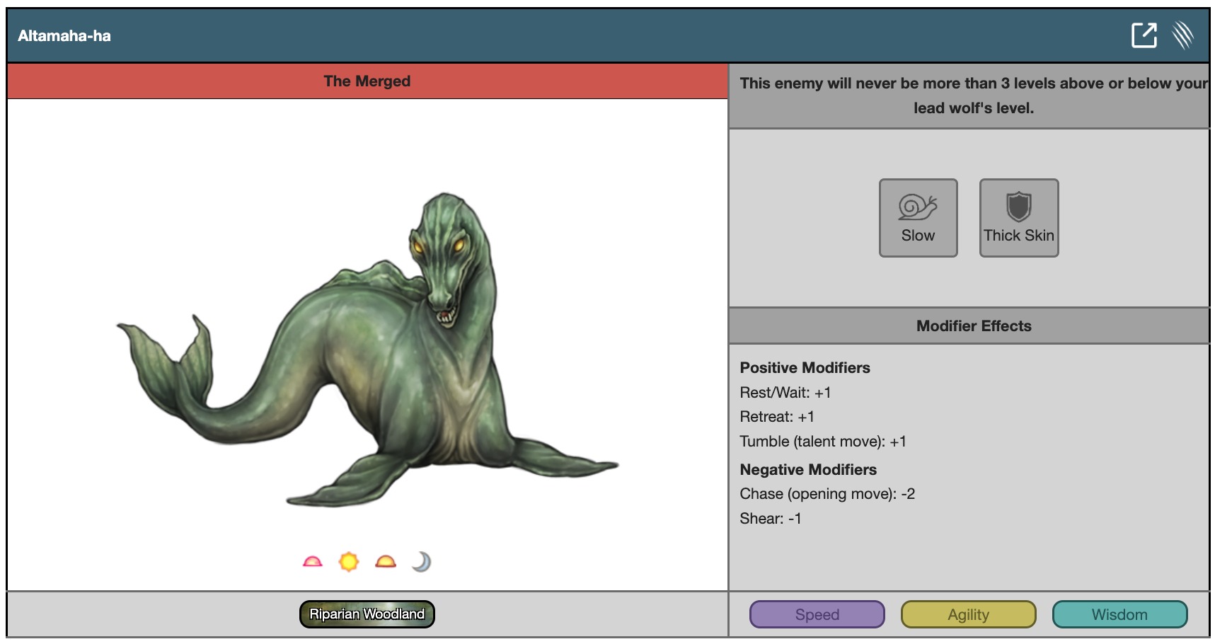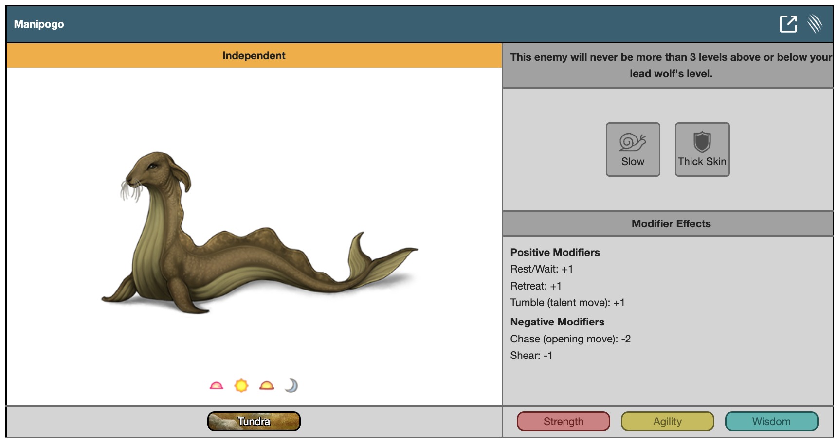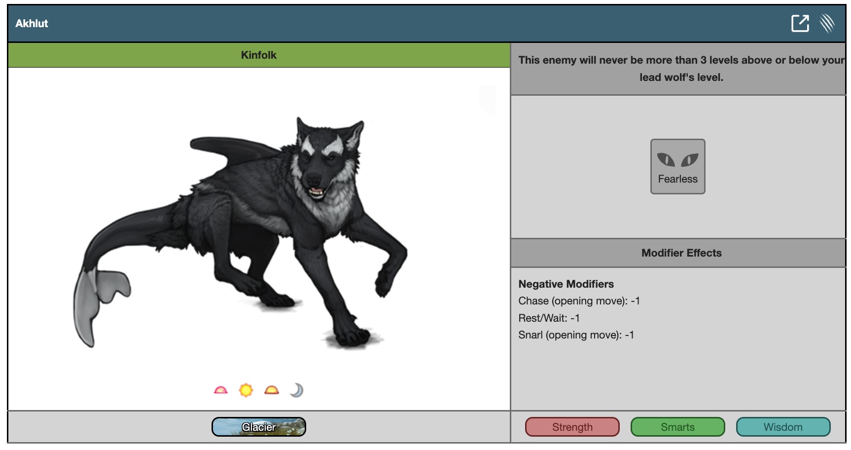 This enemy will never be more than 3 levels above or below your lead wolf's level.