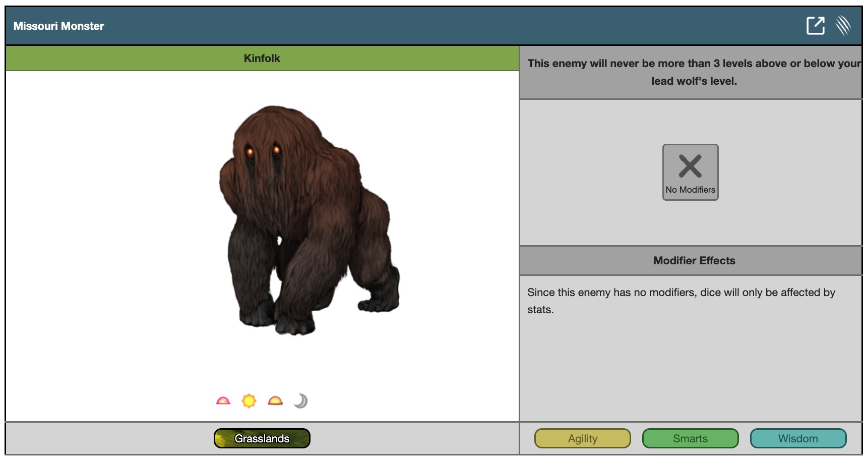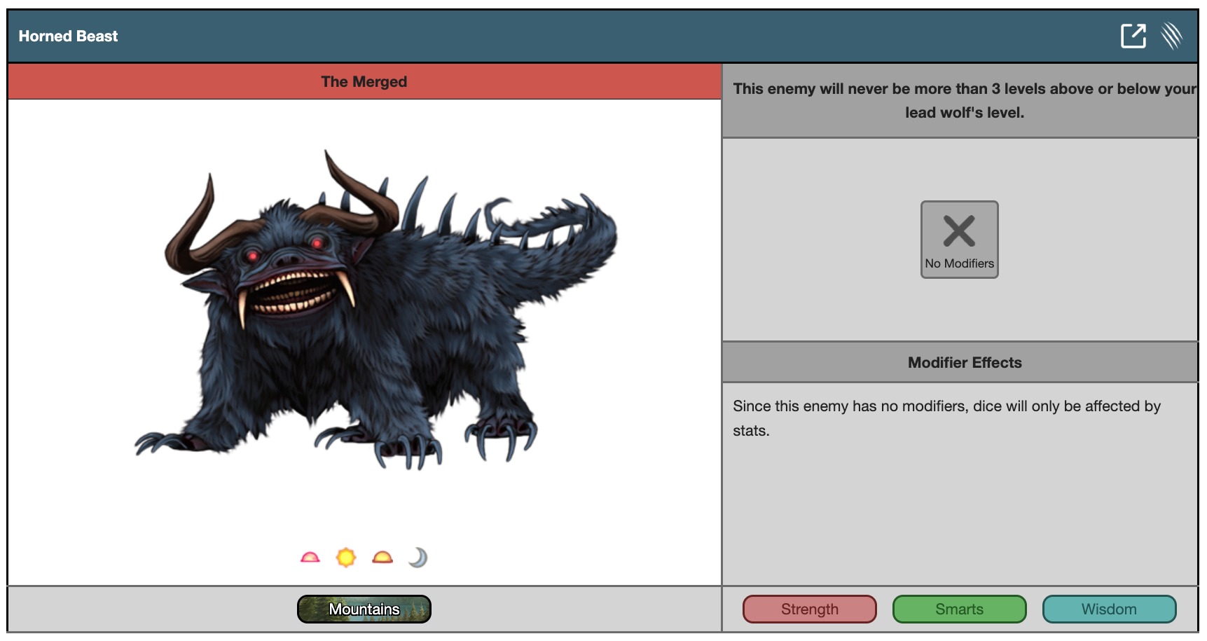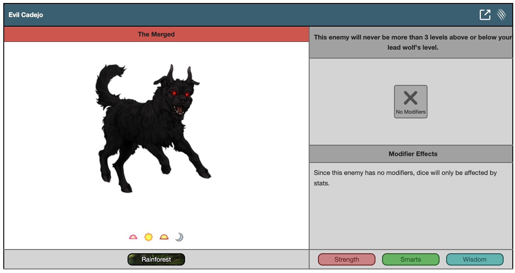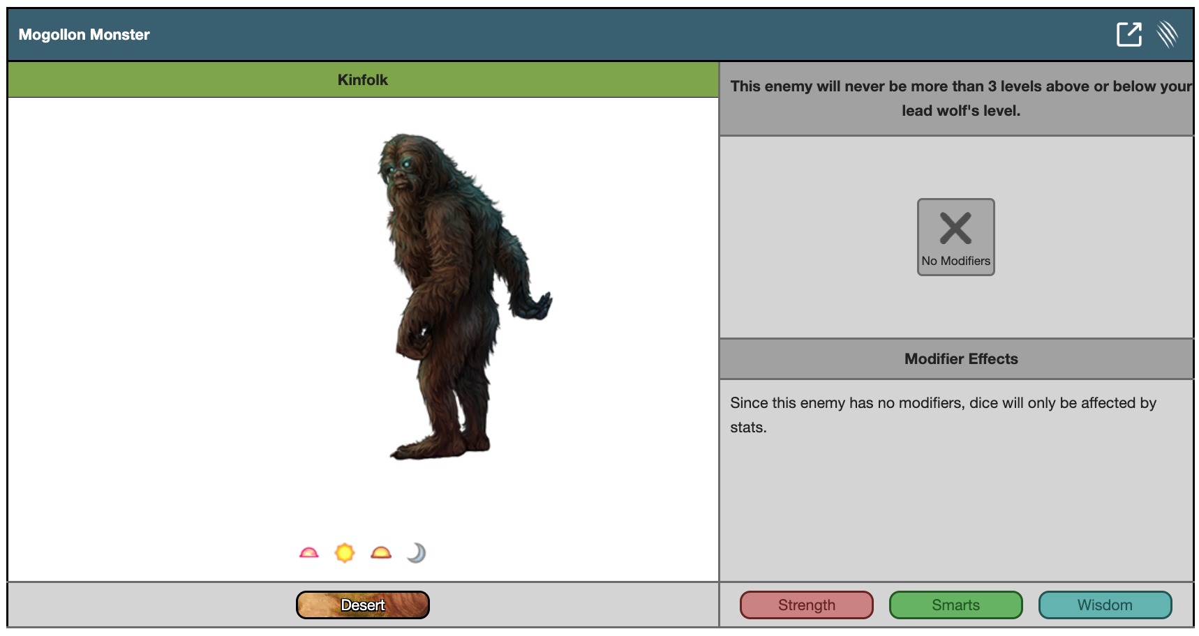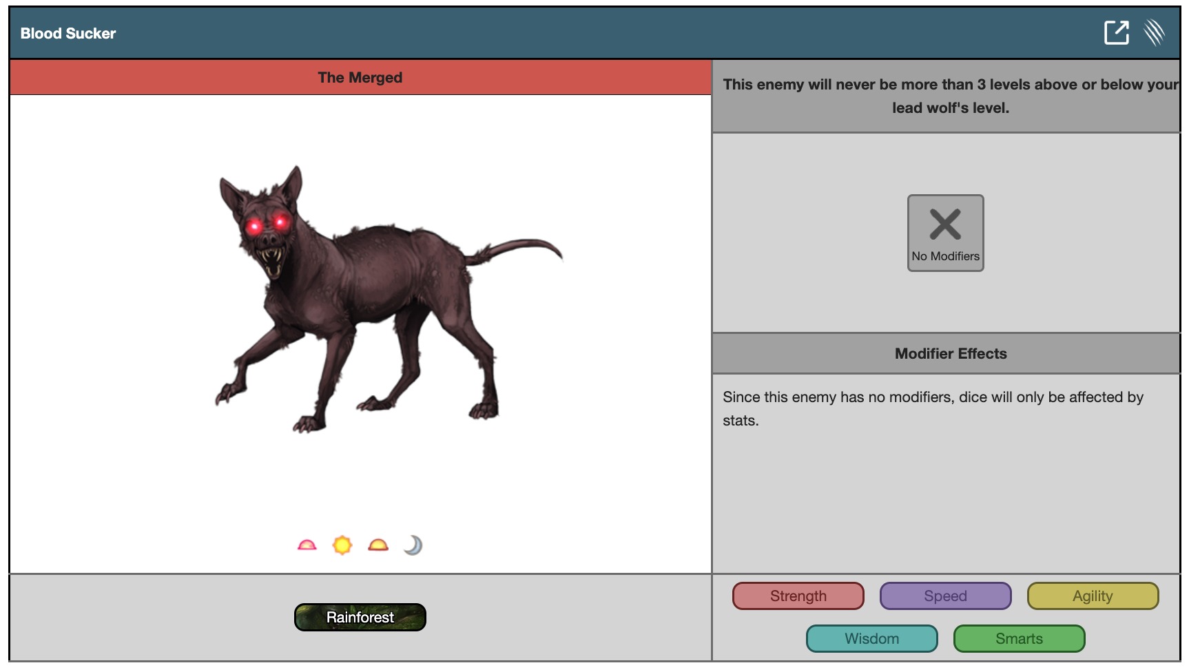 Since this enemy has no modifiers, dice will only be affected by stats.