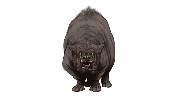 Wet snorting noises alert you to the presence of some other creature, and you suddenly find yourself nose-to-nose with a pig-like animal with saggy skin and weeping eyes. They stand frozen, just as surprised to see you as you are them. They smell funny, and don't quite belong.