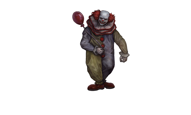 Stare back It may be a really creepy sight but it's still a human, right? Humans are weak if they don't have their fancy equipment. You stare back at the clown, feeling dizzier and dizzier with time. Suddenly, in a blink of the eye, the creature is gone as if it was never here. Was something trying to mess with your mind? You spend some more time investigating but you discover nothing except for some broken animal parts.. Interesting. +2 random tooth and claw trophies