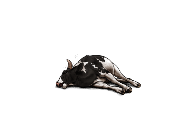 In the middle of nowhere, you notice a cow's carcass with no visible signs of fight or injuries. The poor creature probably collapsed while looking for water.