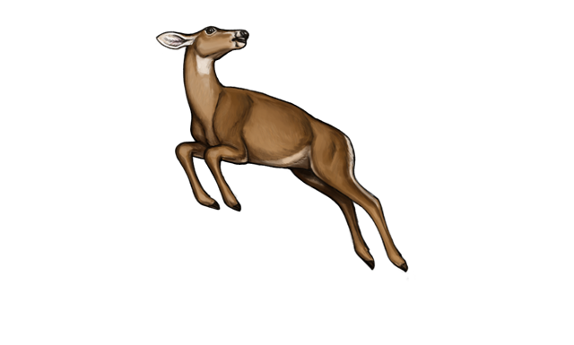 A young blacktail buck struggles to keep up with his herd, trying to run in vain. He's limping heavily, likely injured from trying to outrun the danger. You doubt he will make it to safety before he's caught up in the disaster.