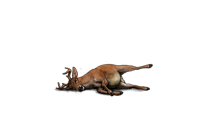 Kill He's in pain, so killing him is a mercy anyway. He wouldn't have made it long. You hurry to take your prize back to your pack before the disaster is upon you. +1 Blacktail Carcass