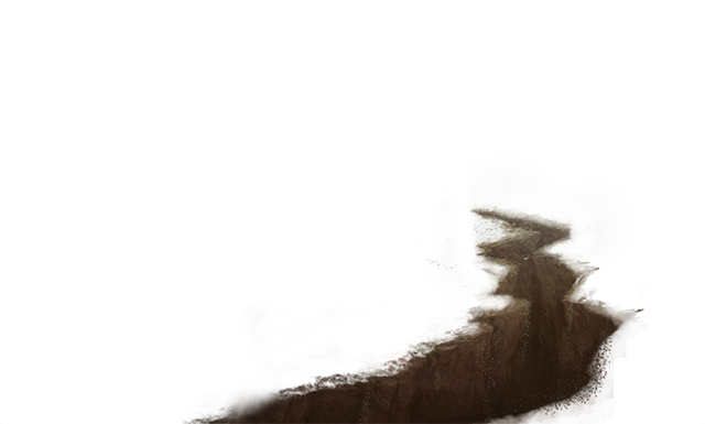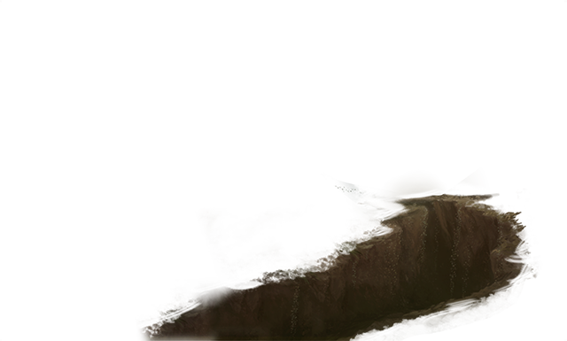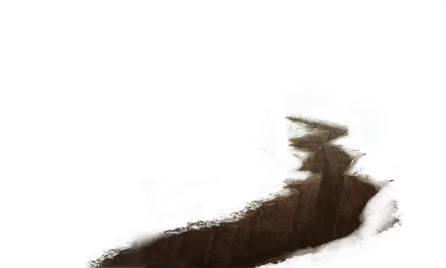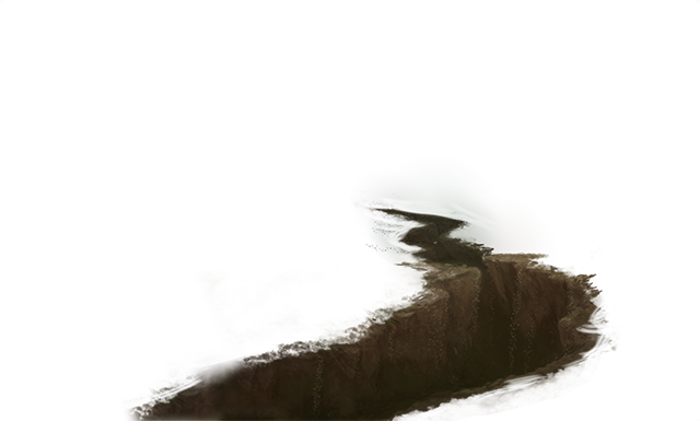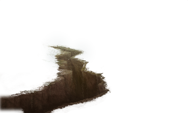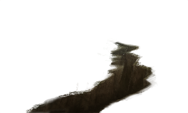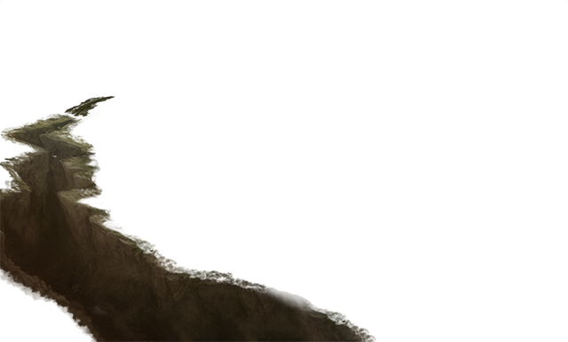 You pick your way through some brush, the earthquakes causing you to be more cautious on your feet. You approach a ledge that you're sure wasn't here before, and see a gaping slash through the ground. Well, that can't be good.