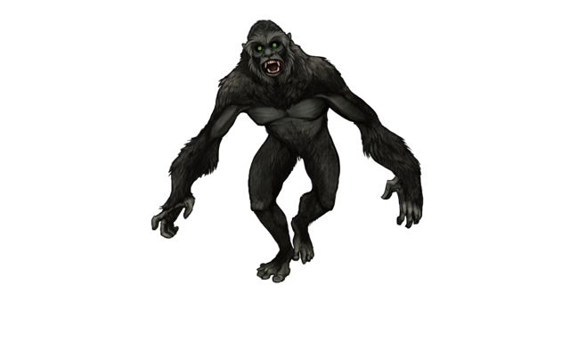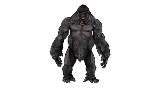The large, dark creature towering over you resembles a giant ape. Its firm stance is a clear sign that it doesn't plan to go anywhere and that it will defend its territory. The more it stares right into your eyes, the more tension you feel.