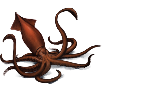 The sight before you is one you never expected to see: a squid outside of the water, traversing the land as easily as any mammal. It's not any ordinary squid, either. It's monstrous and imposing, blocking your way, unfazed when you bare your teeth.