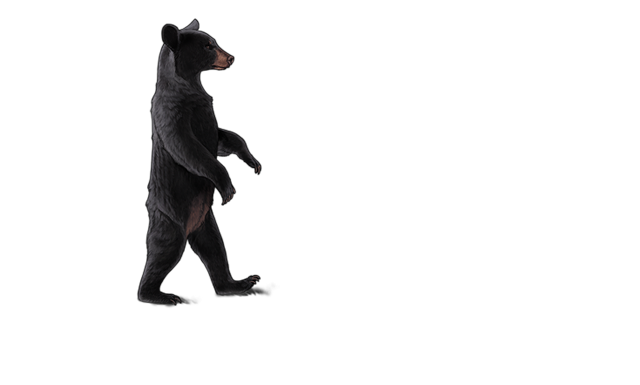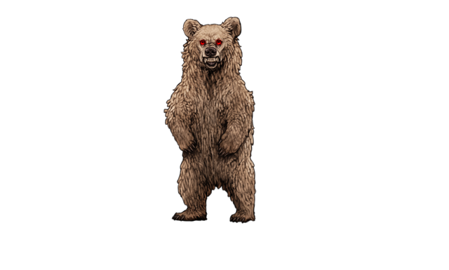 A large, dark shape moves between the trees ahead and your pelt rises in fear. It's several feet tall, and you're certain it's another cryptid come to challenge you. You brace yourself as it turns and moves from behind the trees. Suddenly you find yourself face to face with...a bear? It stands upright on its hind paws, studying you.