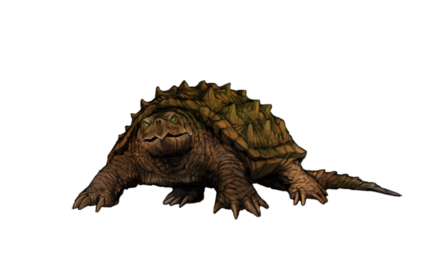 A large snapping turtle blocks your path, letting out a hiss and standing its ground. You must have encroached on its territory!
