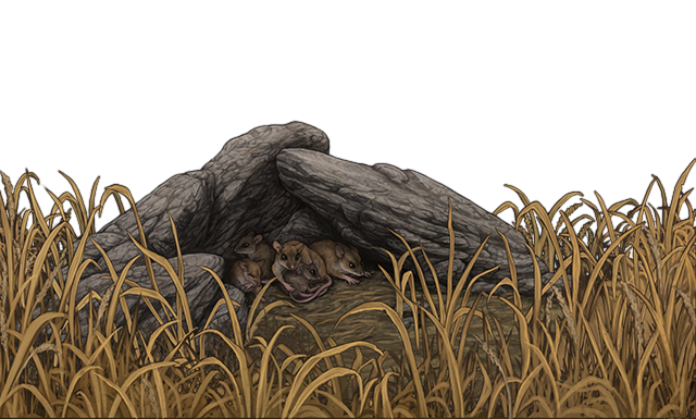 You decide that it's best to lay low and wait until they pass. They outnumber you, and you don't trust the long, shiny sticks they carry that smell like fire. You're able to go undetected as they pass, and once you can no longer hear them you quickly run in the opposite direction. N/A