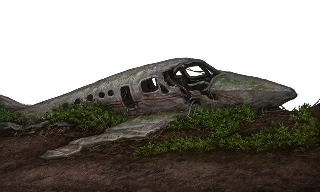 A huge mass of broken and rusted metal shaped like a bird is tucked away between the trees and half sunken into the wet ground. Moss and ivy cover it from head to toe, and you're surprised you haven't seen this here before. Perhaps the disasters had something to do with it? You peer at it, unsure if it poses a threat.