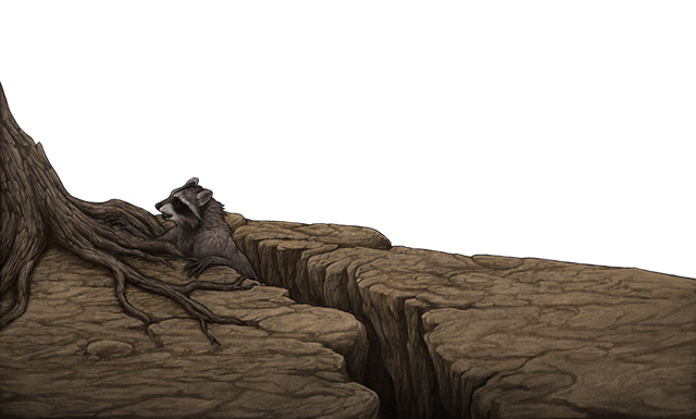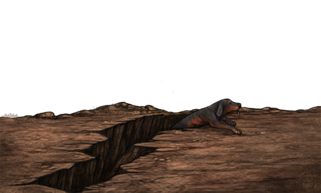 You feel a rumbling beneath your feet. As you look down, the ground starts to split between your paws. You quickly sidestep, and watch from a safe distance as the ground splits apart.