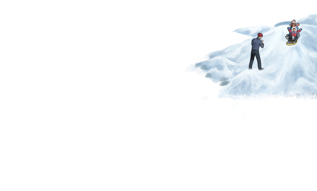 | The human voice is so specific that you realize immediately what the shrieking noises are; but these humans are laughing, which makes curiosity boil under your skin. When you follow the sound, you see two of humans enjoying sliding down a snowy hill. | ||
