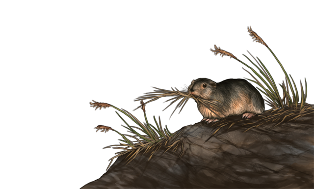 | What's that... a rat? You tilt your head a little. The rodent is carrying some sedge to its burrow. Ah, it must be a northern collared lemming! | ||