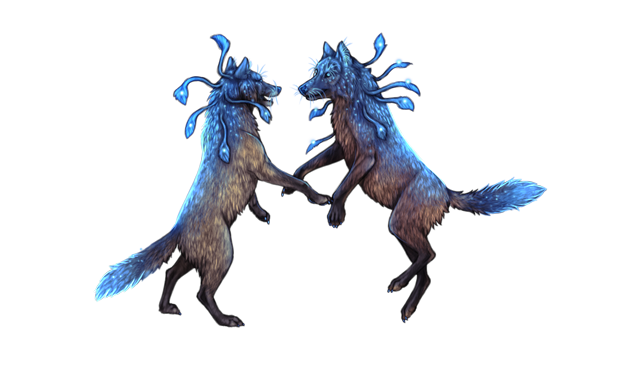 You encounter two wolves traversing this world, much like you are. They seem to have gotten into a quarrel. Lunar essence is charging between them!