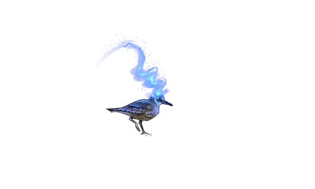 Ambush! The bird notices you just before you snap your jaws and flies away soundlessly. How could it be so fast? A bit upset, you decide to rest at this spot, feeling its odd energy through your skin as soon as you lied down. It becomes clear why the bird was resting here. Before you close your eyes, you discover that the petrel left a shiny spark on the ground. +1 LT