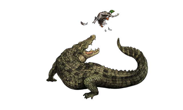 You feel confident enough to attempt snatching prey right from the crocodile's mouth. At least a part of it! Unfortunately, you're too late, and the large reptile gets angry at your intrusion. It abandons the prey only to chase you instead! You manage to escape, but not without an injury. Illness: Open Wound
