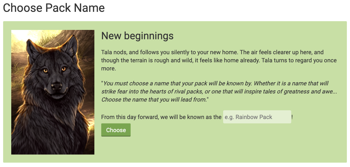 If you decide that you need something need, don't worry! You can change your pack name at any time in the Grove, for a small cost of 1 GC!